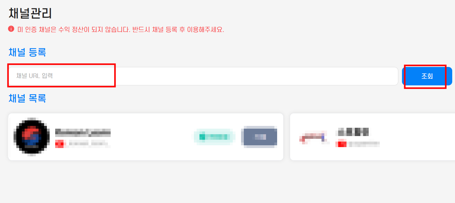 1. 상단 메뉴의 채널관리를 클릭 -> 내 채널 링크를 입력합니다.
