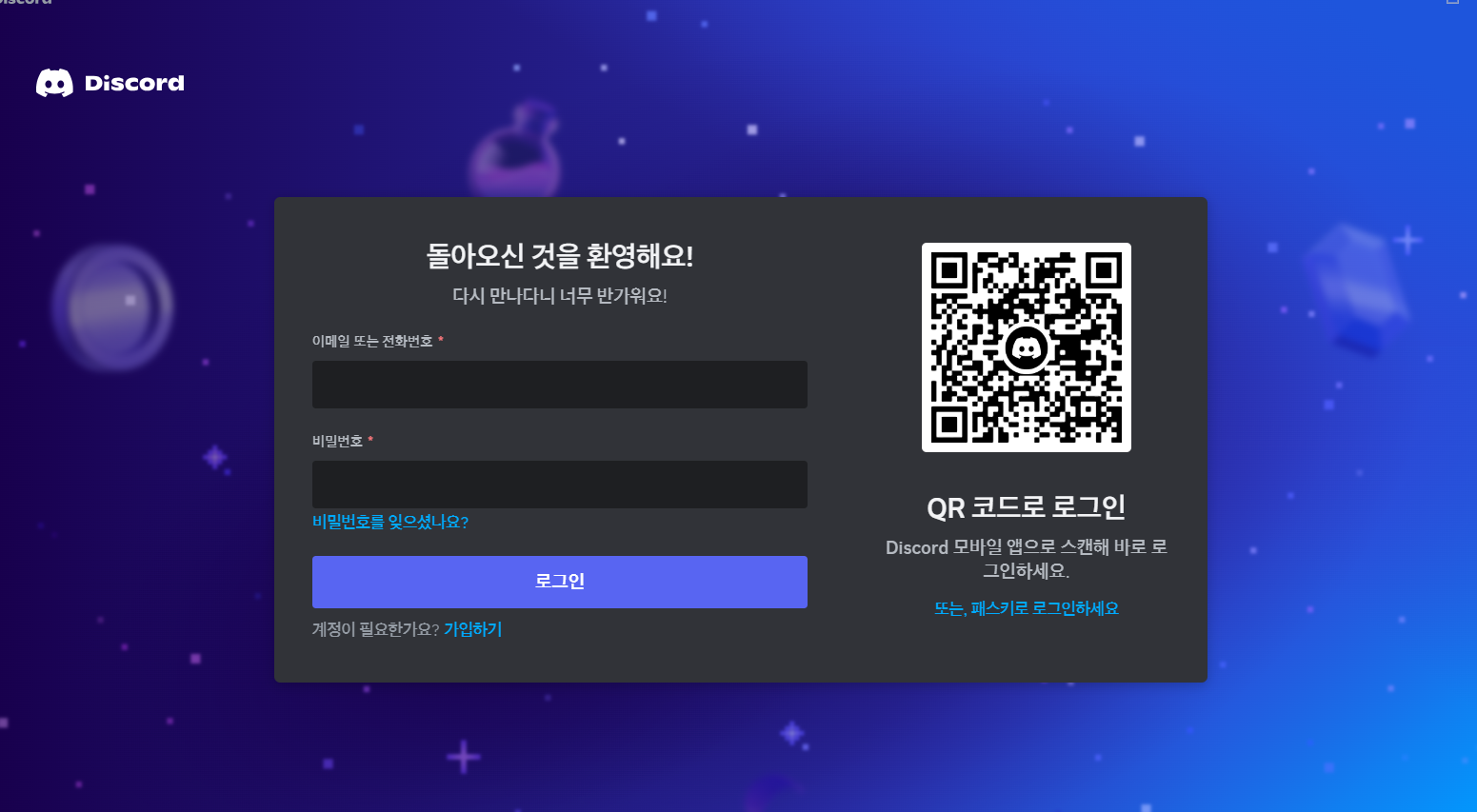 위 파일을 실행하시면 설치 후에 바로 디스코드 로그인 창이 나옵니다.