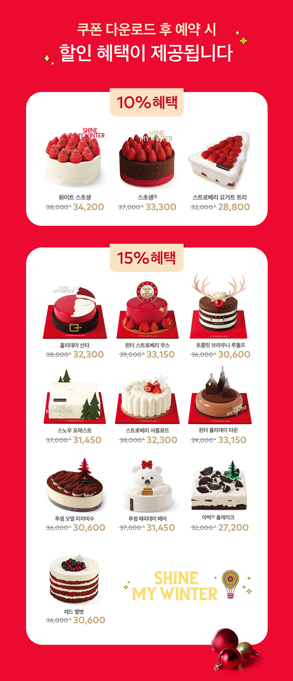 이를 맞아 각 브랜드는 크리스마스 케이크 사전예약과 혜택을 주는 이벤트를 하고있는데